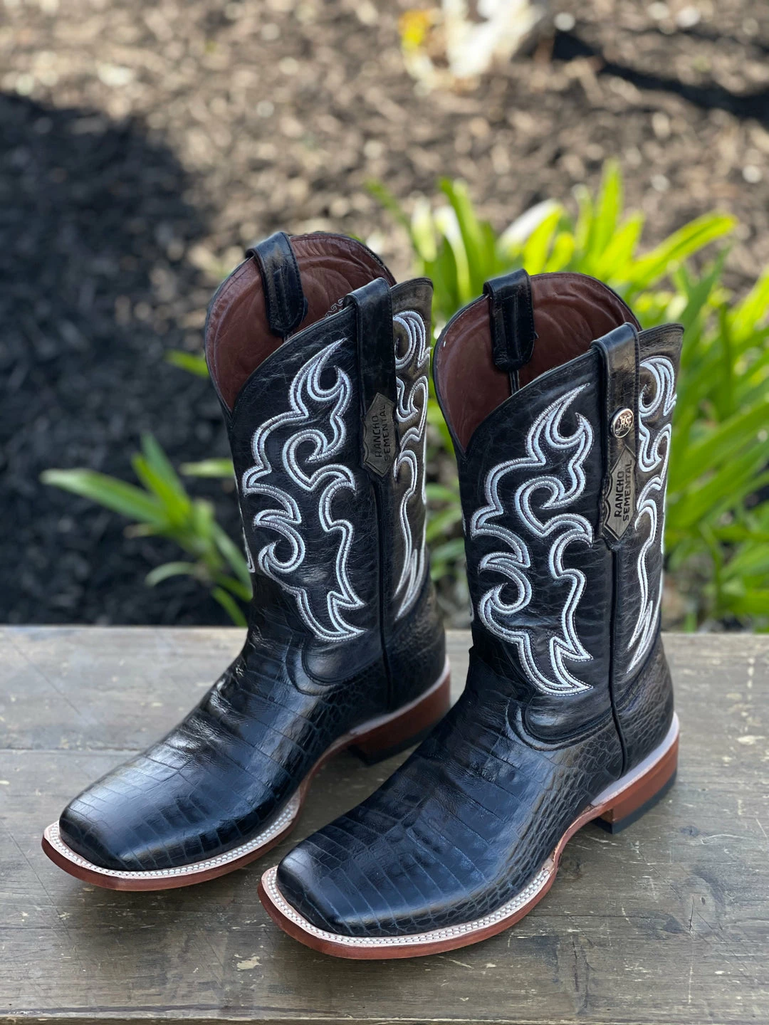 Guadalajara Western Wear Wild West Nobuk Black Wide Square Toe Botin Charro Men