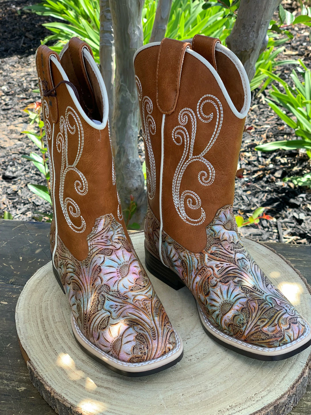 Guadalajara Western Wear Kids Quincy Boots Kid Square Toe Tan Ankle Boot