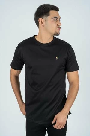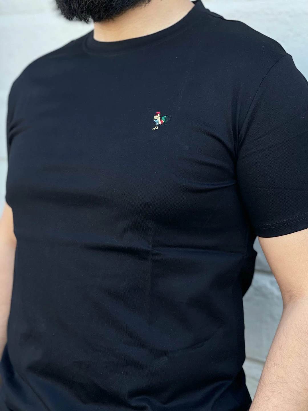 These t-shirts run slim and tight on the upper body. Model is wearing Medium. Model normally always wears medium.