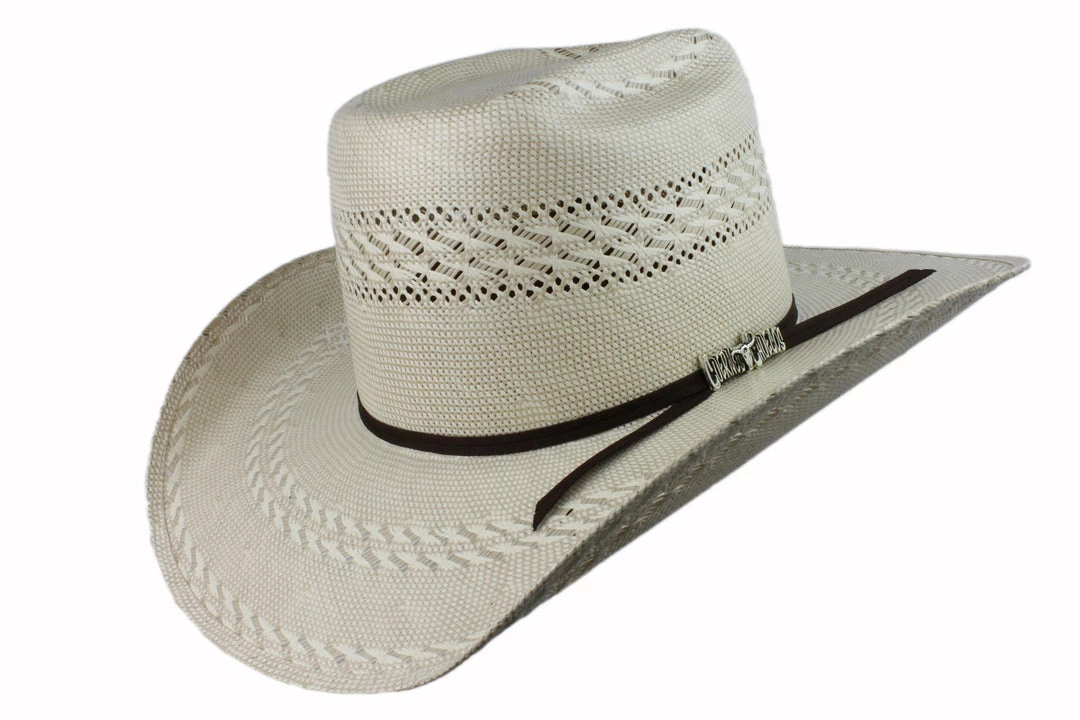 Cuernos Chuecos Vakera Bicolor 3 Randas Cowboy Hat. Features a bull rider styling built with 100x shantung quality straw comfortable sweatband.