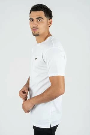 These t-shirts run slim and tight on the upper body. Model is wearing Medium. Model normally always wears medium.