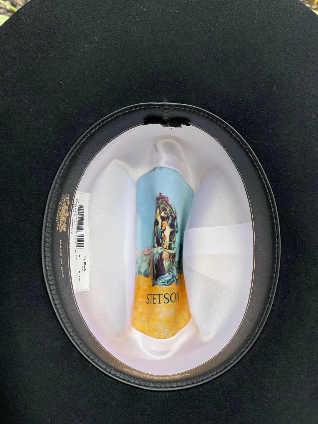Stetson 6x Spartan Black Cowboy Felt Hat Sinaloa (Copa Chica Falda/Brim 3.5″) Men