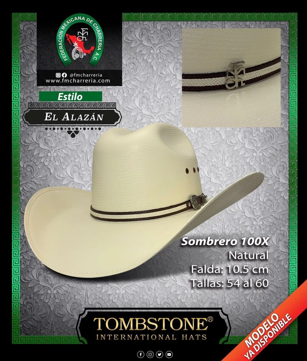 Guadalajara Western Wear Tombstone 100x Chaparral (Copa Chica) Sinaloa Style Cowboy Hat
